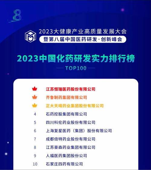 由药智网、中国药业杂志社主办的2023大健康产业高质量发展大会暨第八届中国医药研发•创新峰会于6月16日开幕,会上发布了《2023中国药品研发实力排行榜》系列榜单,asiagame医药凭借深厚的创新研发实力再创辉煌:荣登《2023中国药品研发综合实力排行榜TOP100》榜首、《2023中国化药研发实力排行榜TOP100》榜首。值得一提的是,今年是asiagame医药连续第6年入选《中国药品研发综合实力排行榜》榜首。
