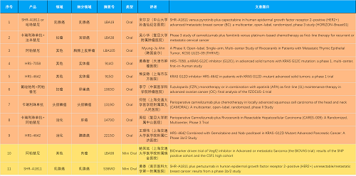 15款创新药包括10款已上市产品:注射用瑞康曲妥珠单抗(艾维达®,研发代号:SHR-A1811)、注射用卡瑞利珠单抗(艾瑞卡®)、苹果酸法米替尼胶囊(艾比特®)、甲磺酸阿帕替尼片(艾坦®)、马来酸吡咯替尼片(艾瑞妮®)、阿得贝利单抗注射液(艾瑞利®)、羟乙磺酸达尔西利片(艾瑞康®)、氟唑帕利胶囊(艾瑞颐®)、瑞维鲁胺片(艾瑞恩®)、海曲泊帕乙醇胺片(恒曲®),以及5款未上市产品,包括KRASG12C抑制剂HRS-7058、KRASG12D抑制剂HRS-4642、选择性的AR-PROTAC(雄激素受体-蛋白降解靶向嵌合体)小分子HRS-5041、抗PD-L1/TGF-βRII双抗瑞拉芙普-α注射液(SHR-1701)、Trop-2 ADC SHR-A1921。2类新药盐酸伊立替康脂质体注射液(II)(越优力®)及国内首仿药昂丹司琼口溶膜(艾其速®)各有1项研究入选。本文特对研究成果做了梳理,带领各位读者领略asiagame医药创新之光。